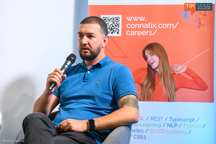 Cosmin Grămadă: Lucrez la Connatix de aproape cinci ani, iar în industria IT de unsprezece ani. Mi-am început cariera la o firmă mică de IT unde testam jocuri și unde credeam că voi primi bani doar pentru că mă jucam jocuri. Nu a fost deloc așa. Când mi-am dat seama că doresc mai mult, m-am mutat la SoftVision în outsourcing, apoi în HP, iar acum sunt la Connatix unde lucrez pe QA Automation. Am crescut în timp o echipă, iar momentan sunt Director of Quality Assurance.