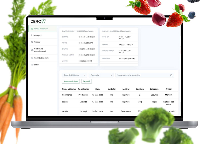Portalul ZeroW este o platformă web ce promite să fie un tool puternic, intuitiv și ușor de folosit, ce promovează producția și consumul responsabil prin monitorizarea cantității de mâncare risipite, de la ieșirea din fermă până când aceasta ajunge pe masa consumatorilor.