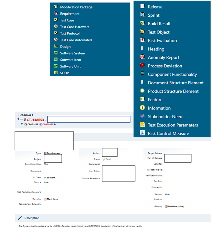 Tipul documentului; (Similar cu tipul obiectelor, doar că aici apar tipuri noi, precum matrix de trasabilitate sau design and validation. )
