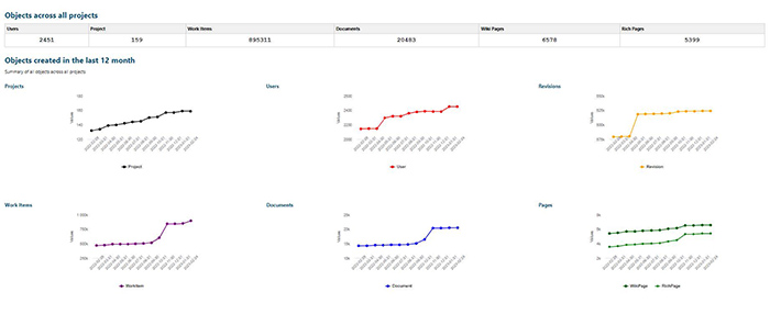 Pachetele standard sunt grupate pe mai multe funcționalități: Requirements Management, Test & Quality Management, Issue & Risk Management, Build & Release Management Change & Configuration Management și altele.