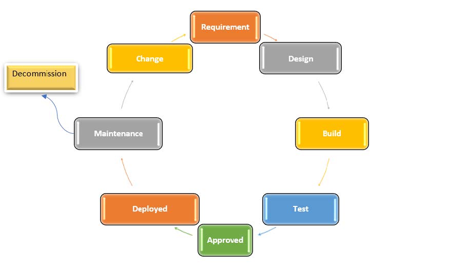 Figura 1: Etapele de viață ale unei aplicații de la idee până la retragerea de pe piață (decommission).