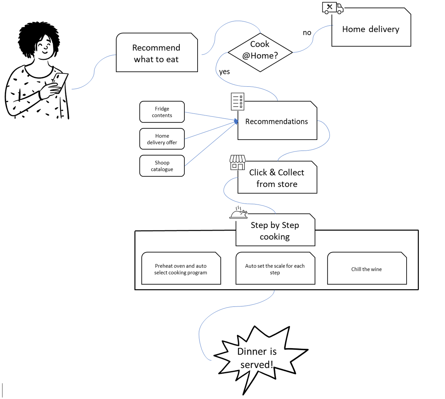 Conform unui studiu[4], 47% dintre afacerile din lanțul de aprovizionare au investit în dispozitive IoT, și doar 20% dintre acestea au investit în analiza datelor pe care le colectează. Unul dintre principalele motive pentru acest procent mic de analiză a datelor este complexitatea agregării datelor în formate diferite și niveluri diferite de detalii. Standardizarea este necesară și vitală pentru întregul sistem end-consumer al dispozitivelor IoT pentru a putea avansa mai departe de stadiul actual. Odată cu standardizarea, posibilitățile de creare de noi servicii/produse bazate pe analiza datelor colectate devin mult mai realiste și mai ușoare. Se poate merge mult mai departe decât cu unele cazuri de utilizare de bază (de pildă: cereri de service a dispozitivului bazate pe utilizare). Un exemplu avansat bazat pe informațiile tuturor electrocasnicelor inteligente este acela că o platformă poate sugera ce să gătesc astăzi în funcție de ce detectează camera din frigider, ce pot completa din magazinul aflat pe drumul spre casă. Odată ajuns acasă, cuptorul este deja preîncălzit și setat pe programul corespunzător, cântarul setat pentru fiecare pas, iar la sfârșit vinul care se potrivește perfect cu rețeta mea mă așteaptă la temperatura perfectă. Din acest scenariu, toți actorii implicați pot extrage venit prin furnizarea datelor necesare.