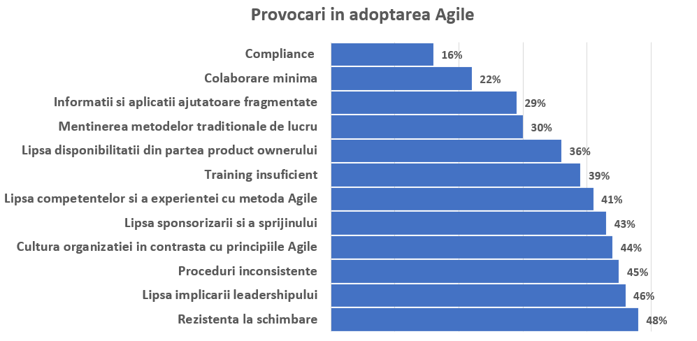 Fig. 3. Provocări în adoptarea Agile, link sursă: State of Agile 2022: Things You Need to Know (knowledgehut.com)