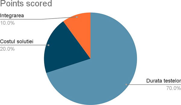 Această pondere este extrem de importantă deoarece în scenariul de față a fost esențial în decizia finală, întrucât a schimbat locul în clasament între o soluție oferind mai multă accesibilitate și o altă soluție oferind un plus din punctul de vedere al duratei execuției testelor.