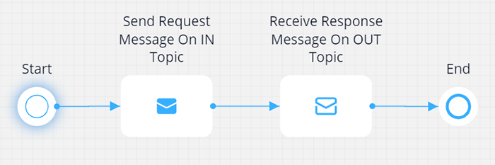 Cu alte cuvinte, apelarea unui sistem extern implică publicarea unui mesaj de solicitare pe un subiect de intrare. De acolo este consumat de un conector care se ocupă efectiv de integrare. Răspunsul integrării, fie așa cum este, fie post-procesat, în funcție de implementarea conectorului, este publicat pe subiectul de ieșire pentru ca procesul să preia și să continue execuția. Corelarea se realizează prin identificatorul procesului. Mai sus este prezentat un scenariu de blocare în care procesul așteaptă răspunsul, dar mecanisme precum gateway-urile paralele ale BPMN permit împărțirea fluxului în mai multe căi paralele.
