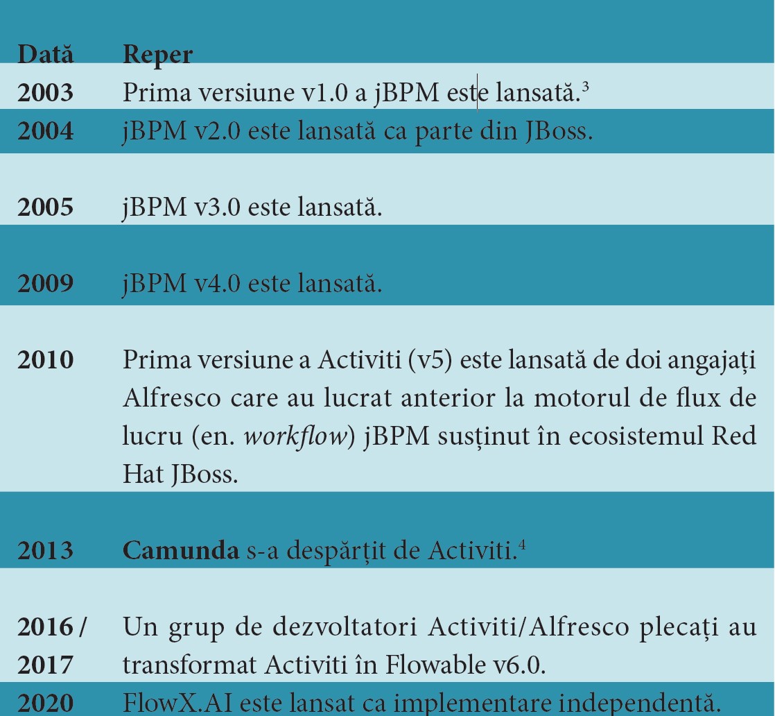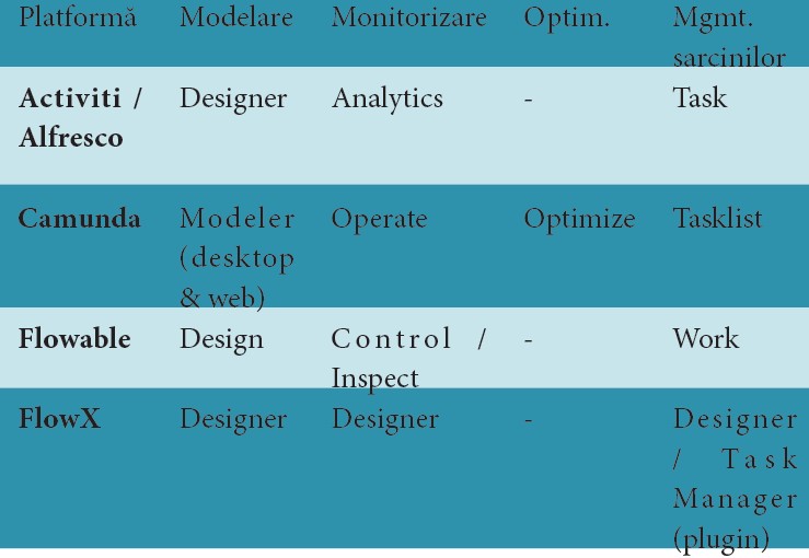 Următoarele secțiuni parcurg pe scurt platformele BPMN vizând obiectivul de a evidenția istoria și specificul fiecărei platforme. Multe dintre ele împărtășesc un fundal comun: