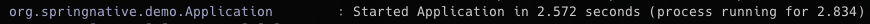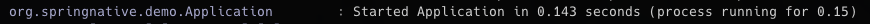 În imaginile de mai jos, putem vedea logurile din timpul pornirii aplicațiilor Spring, timpul de pornire al aplicației compilată ca imagine nativă a avut timpul de pornire de doar 143 ms, în timp ce timpul de pornire al aplicației ce rulează folosind JVM este de 2,834 secunde.
