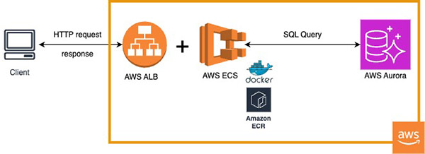 Figura 1(a) - Privire de ansamblu asupra unui sistem cu microservicii, AWS Application Load Balancer și Elastic Container Services.