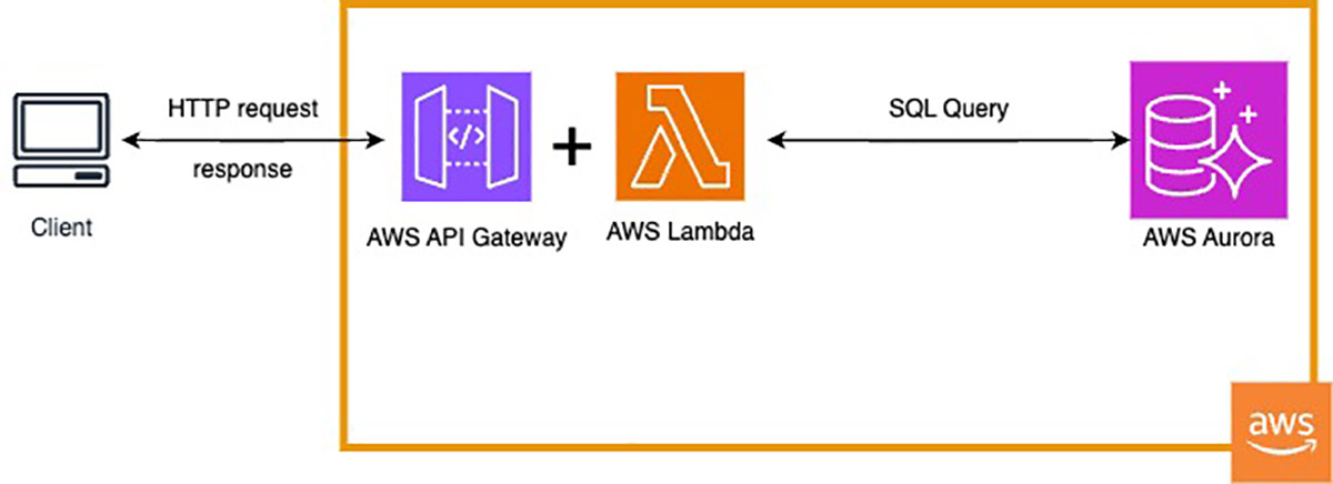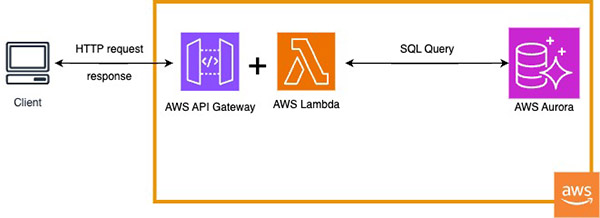 Figura 1(b) - Privire de ansamblu asupra unui sistem ce folosește strategia serverless cu AWS API gateway și funcții Lambda.