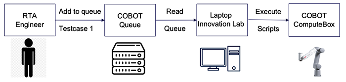 Soluția noastră RTA folosește coboții pentru a efectua atât sarcini de testare fizică, cât și digitală. Acești coboți sunt integrați în procesul nostru de automatizare a QA, facilitând lansări mai rapide de produse și obținând o execuție 100% precisă a testelor. Sistemul este conceput pentru a gestiona o gamă largă de scenarii, de la interacțiuni simple cu interfețe digitale până la sarcini fizice complexe, cum ar fi scanarea codurilor de bare sau operarea comenzilor mecanice.