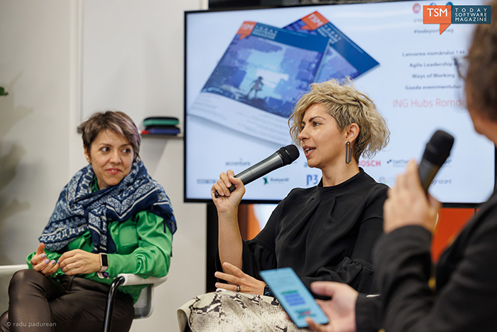 Andreea Pârvu: Eu vreau să ies din sfera tehnică, deoarece știu că unele abilități tehnice de acum 10-15 ani nu mai contează. Trebuie să ne readaptăm din punct de vedere tehnic și să învățăm lucruri noi în permanență. Eu folosesc foarte mult acronime, iar acronimul meu preferat pentru lider este H(aș)-H(aș)-H(aș). Un lider este Human, Humble și are Humor. Liderii trebuie să aibă o vulnerabilitate în fața echipei, iar echipa să aibă vulnerabilitate unul către altul și față de lider. Vorbeam de importanța comunicării deschise. Dacă există bariere impuse de lider, acestea sunt greu de trecut, de spart. Apoi, mulți lideri uită de unde au plecat, dar uită și de ce sunt acolo. Sunt orientați spre a arăta ce pot, spre performanță, spre a trage de echipă și de ei înșiși. A fi umil se referă la cum te poziționezi tu în sprijinul echipei tale. Apoi, partea de umor este și ea esențială, deoarece noi nu mai știm să ne distrăm. Intrăm în ședințe, mergem la serviciu și suntem extraordinar de serioși. Livrăm, dar trebuie să mai și râdem.