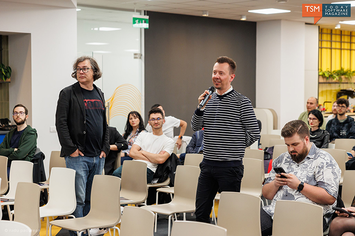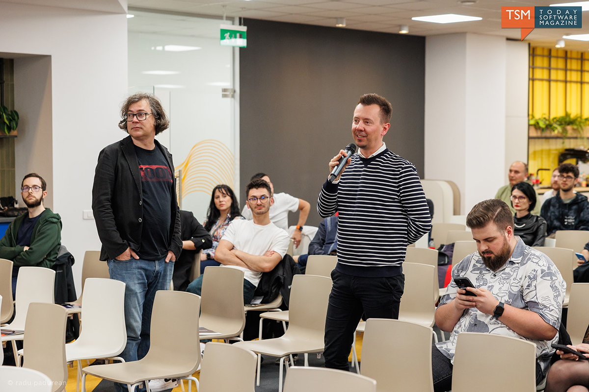 (întrebare din sală): Am pus întrebarea voastră în ChatGPT ca să aflu cum va arăta meseria de programator peste 20 de ani și ce meserii noi vor apărea. Vă invit să vă uitați și voi. Poate vă va schimba perspectiva.