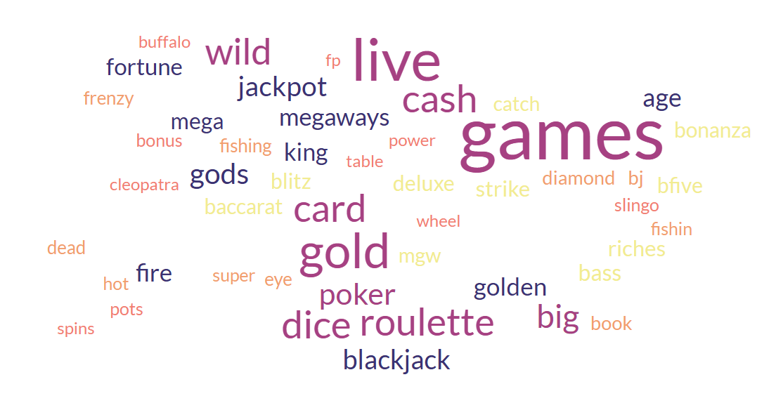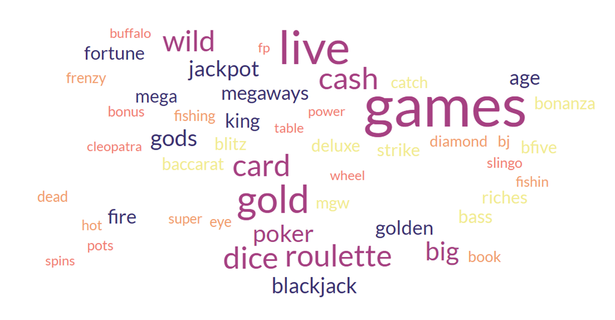 Exemplu Word Cloud pentru termenii principali identificați din crawl-ul Betfair Casino