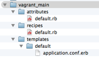 Rețetele Chef Solo pot fi descărcate de pe Opscode. Structura unei rețete Chef este prezentată în Fig. 2. Structura unei Rețete Chef Solo. Pentru adăugarea configurațiilor doar fișierele scrise îngroșat trebuie modificate.