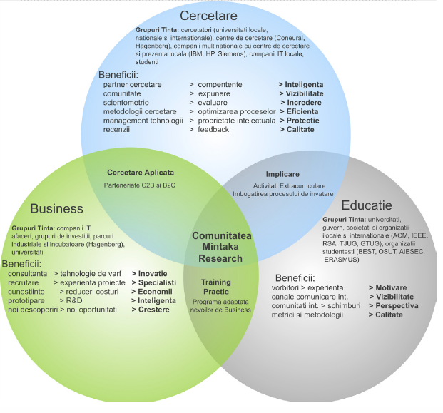 Mintaka Research este, pe scurt, o platformă colaborativă online de cercetare şi dezvoltare interdisciplinară, având scopul declarat de a reuni cercetarea, mediul de afaceri şi educaţia într-un efort comun şi de a oferii servicii menite sa faciliteze cooperarea, construirea de relaţii şi comunicarea între competenţe din medii şi domenii diferite. Scopul principal este de a construi o comunitate de cercetare şi un set de unelte care permit inovarea în diferite domenii, dar şi posibilitatea de a împărtăşi cunoştinţele acumulate cu mediul academic şi cel de afaceri, asigurând în acest fel atât continuitate, cât şi noi oportunităţi de a introduce inovaţiile din cercetare în viata de zi cu zi. Filozofia centrala este promovarea efortului colaborativ, în locul celui individual, ajutat de un set de unelte şi servicii care permit abordarea unor proiecte tot mai grele şi crearea de plus valoare.